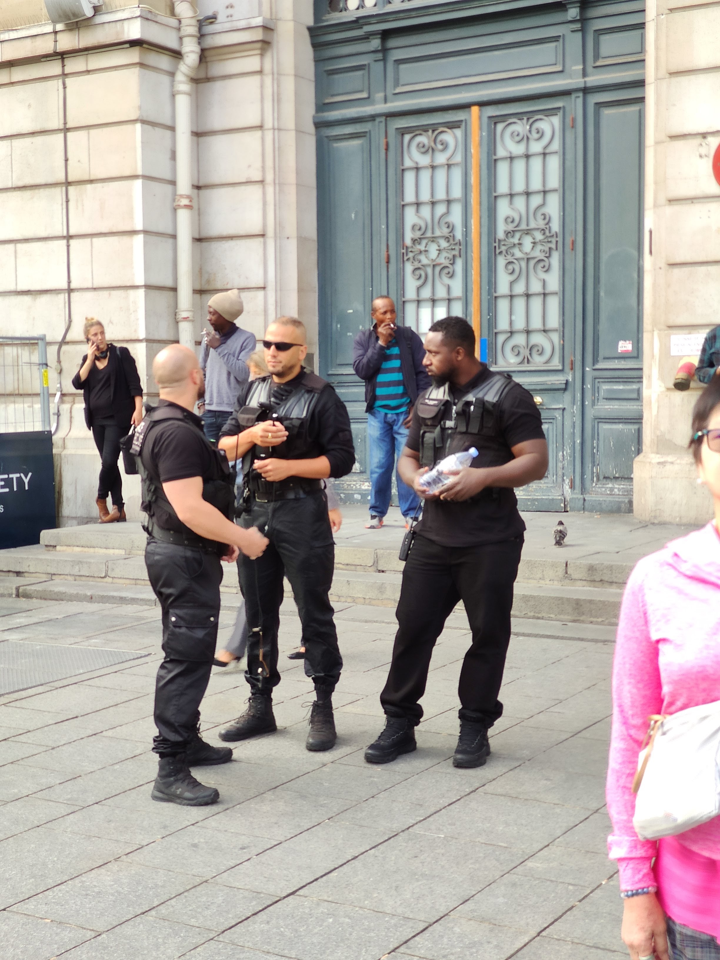 Plateforme de transport tout simplement incroyable. Ces agents de sécurité ressemblent à des personnages de film. Ils ont l'air très en forme et musclés, bien armés et leur présence est assez intimidante au début mais permet de se sentir en sécurité lorsqu'on se déplace ici.