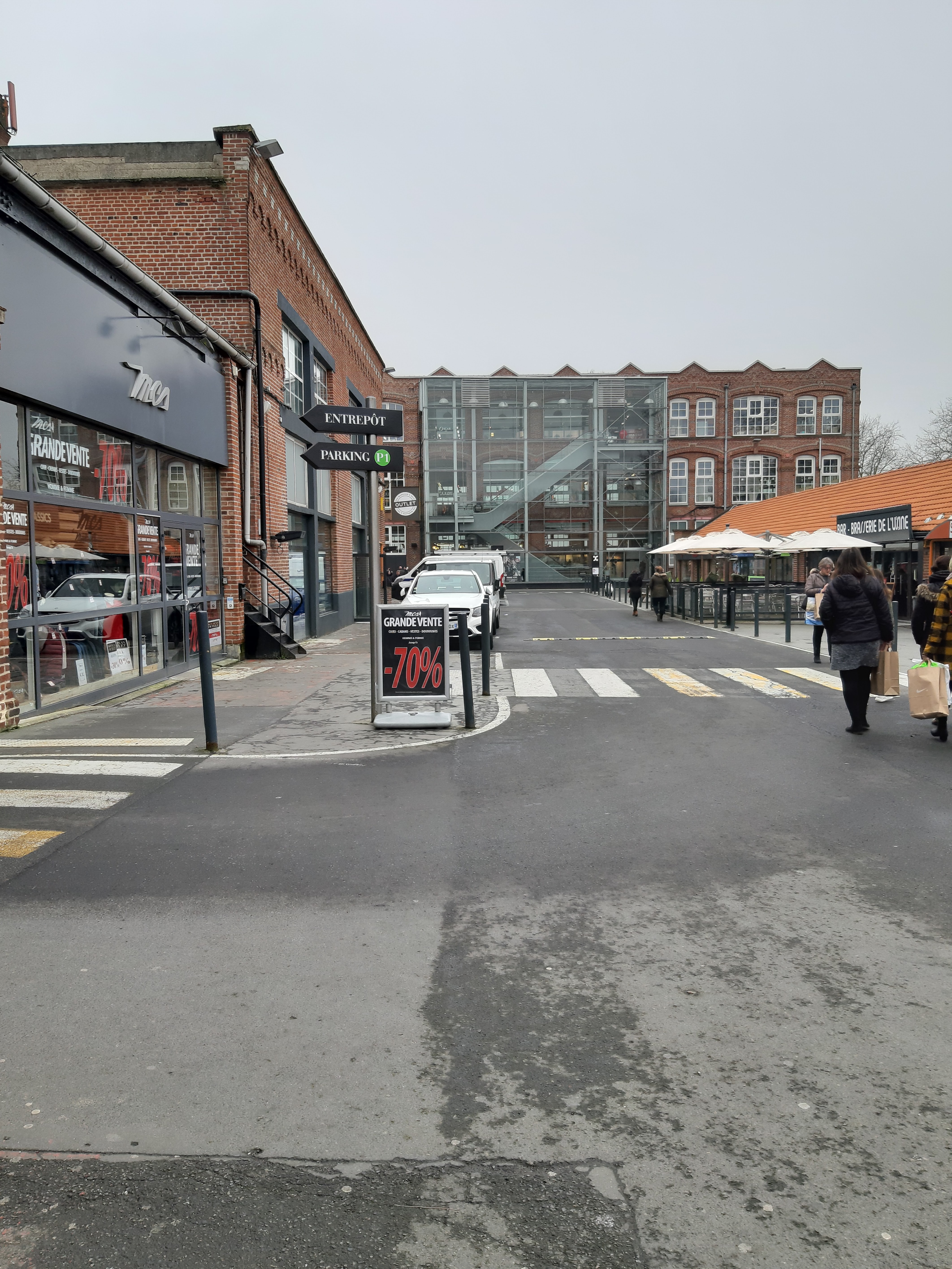 L'usine de Roubaix, centre commercial pour la mode, comestique, mobilier,.... en OUTLET à des prix abordables !!! Un seul problème, le parterre du parking très dangereux pour les piétons et beaucoup pour les véhicules (je pensais être sur un champ de mines, d'énormes ornières où on doit zigzager...)