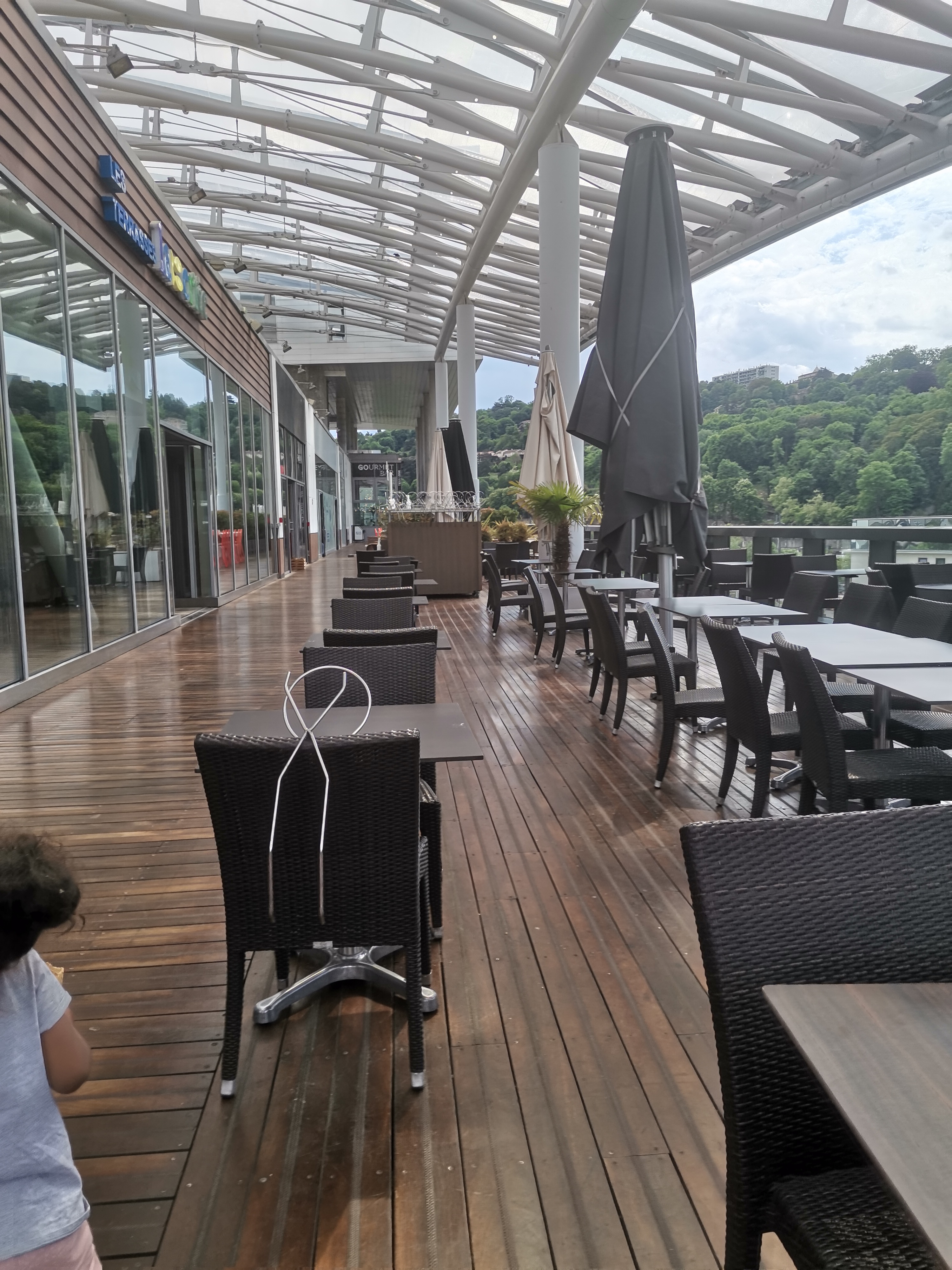 Dommage que le pôle de commerce n'est pas couvert ou du moins couvert partiellement mais des commerces intéressent et des cafés avec un beau paysage